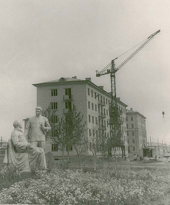 Парный памятник «Приезд И. В. Сталина к В. И. Ленину в Горки» находился на площади Строителей, в сквере напротив школы № 8. Такой же памятник стоял в д. Матурино за р. Шексной – напротив конторы совхоза «Комсомолец». Эти скульптурные композиции, отлитые в бетоне, относились к массовому варианту парного памятника «Ленин и Сталин в Горках». В. И. Ленин был изображён сидящим с книгой в правой руке, левой рукой он касался руки И. В. Сталина, а И. В. Сталин стоял рядом – со свитком в левой руке, правой рукой опирался на балюстраду.