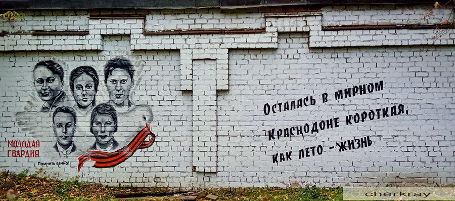 Особенность сквера - кирпичная стена гаражного комплекса длиной почти 260 метров. На ней увековечены портреты героев и их высказывания. Фразы, которые написаны на стене - это реальные слова тех ребят, что совершили подвиг во время Великой Отечественной войны в Краснодоне. Проект "Сквер памяти героев-краснодонцев" выиграл грант компании "Северсталь" в конкурсе "Череповец, включайся!" в размере 700 тысяч рублей.
